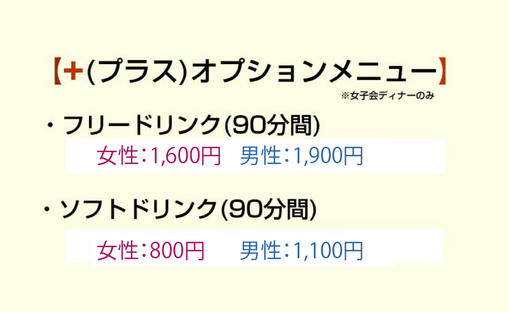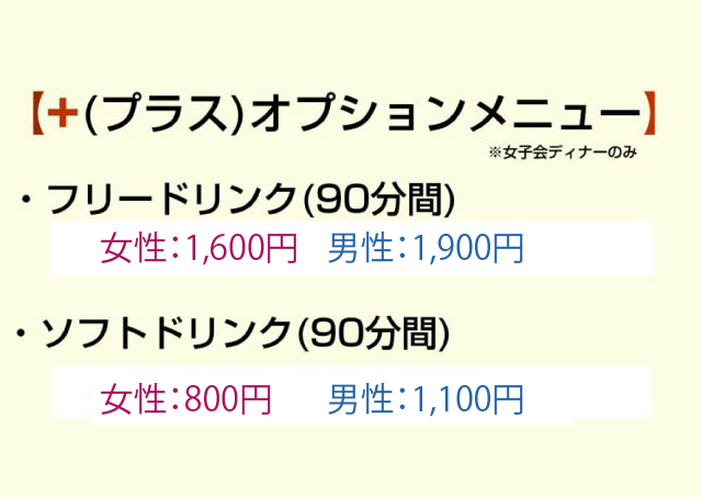 女子会ディナーのオプションメニュー