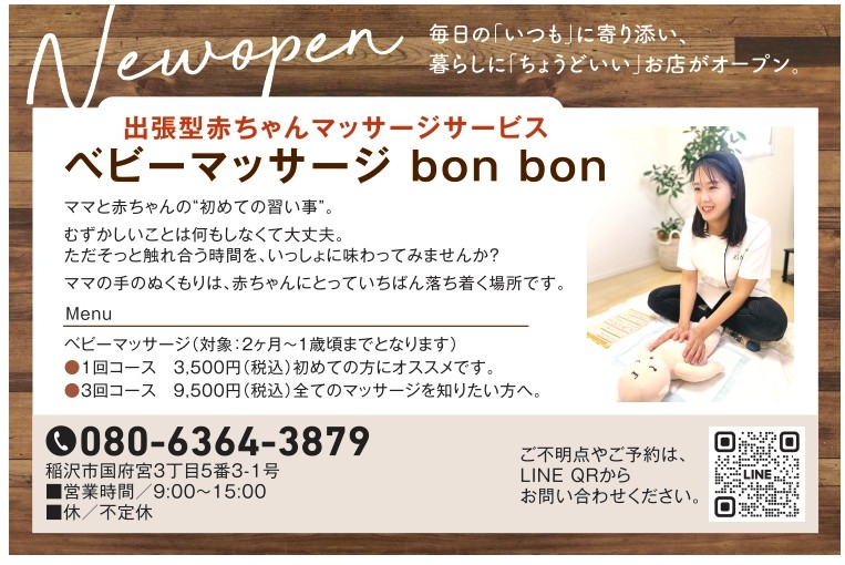 新しくopenしたお店「ベビーマッサージbon bon」さん。